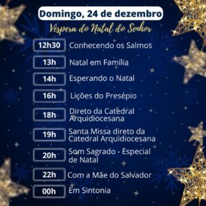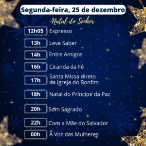 Na ocasião, a Rede Excelsior de Comunicação através das emissoras de rádio AM 840  e FM 106.1 realizará uma programação especial a partir do objetivo de fazer com que os ouvintes também estejam inseridos no contexto das festividades natalinas. Nisto, a grade de programas conta com temáticas de cunho religioso, informativo e reflexivo como o ponto alto, a transmissão da Santa Missa diretamente da Catedral Basílica Primacial de São Salvador da Bahia, em ambos os dias. Confira: